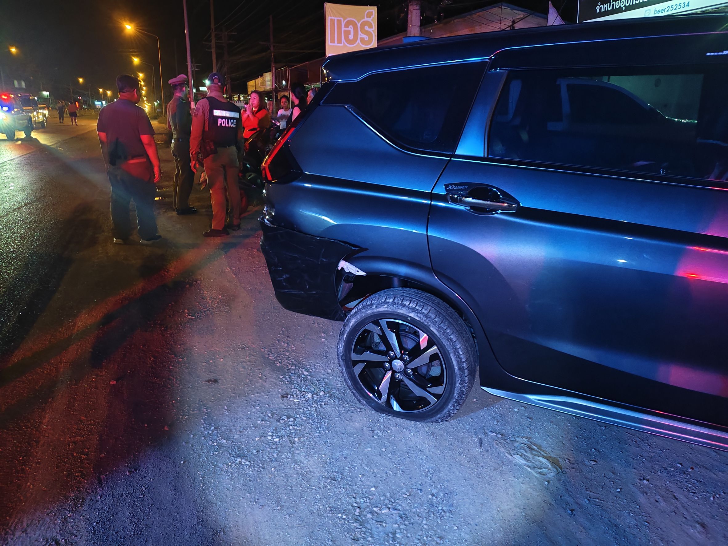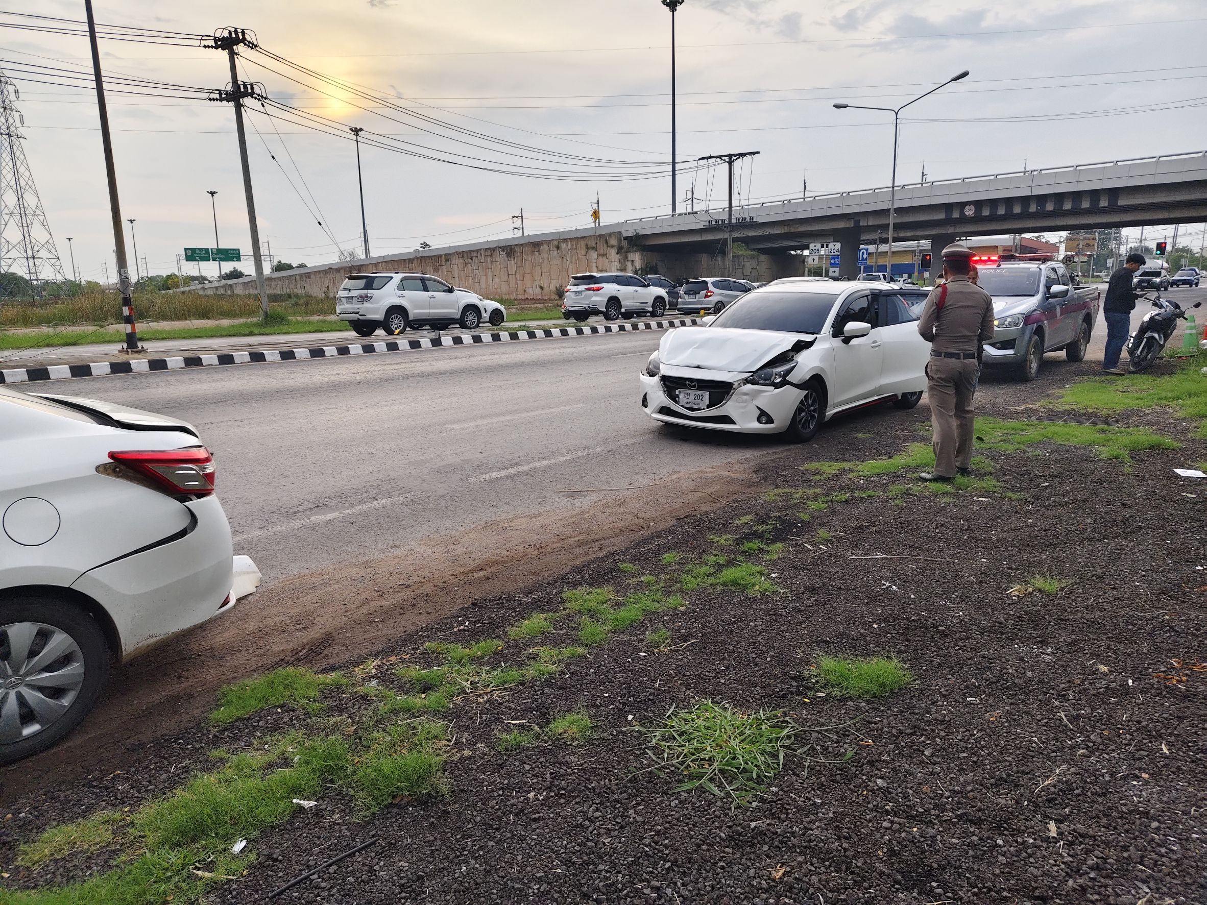 ร้อยเวรออกตรวจสอบที่เกิดเหตุ รถยนต์ชนท้ายรถยนต์