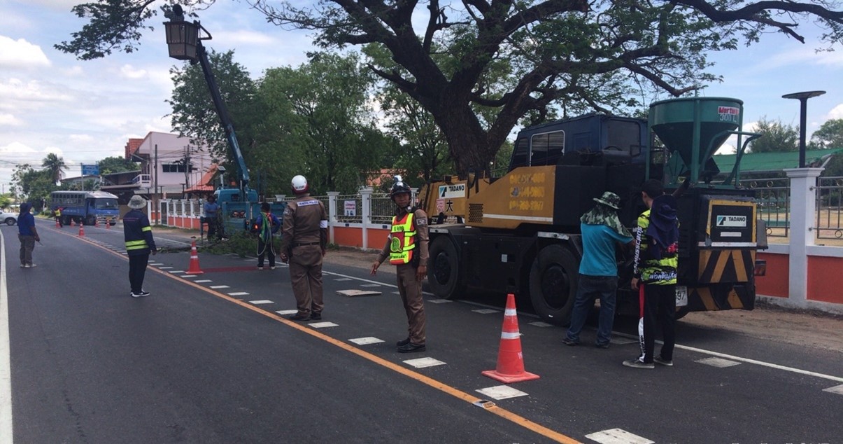 สายตรวจจราจร สภ.จอหอ อำนวยความสะดวกจราจร ทต.ตลาดมาตัดแต่งกิ่งไม้หน้าโรงเรียนบ้านบุ