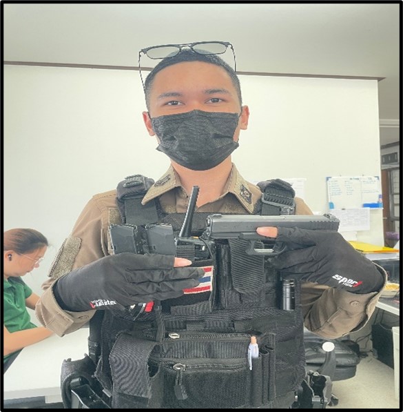 สายตรวจรถจักรยานยนต์ ฝึกทบทวนการใช้อาวุธประจำกาย ณ บริเวณหน้าเสาธง สภ.จอหอ