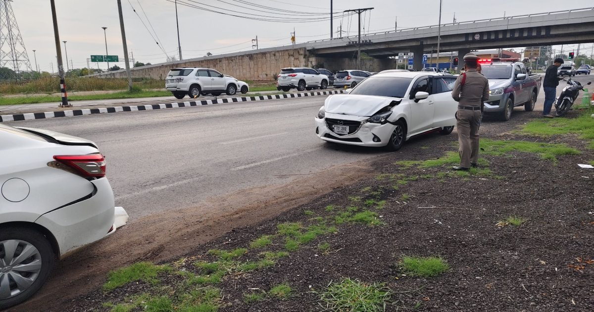 ร้อยเวรสอบสวน สภ.จอหอ ออกตรวจเหตุรถยนต์ชนท้ายรถยนต์