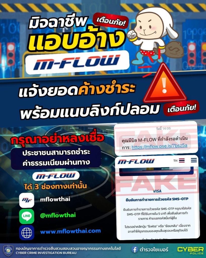 เตือนภัย กลับมาอีกแล้ว!! มิจฉาชีพแอบอ้าง M-Flow ปลอม