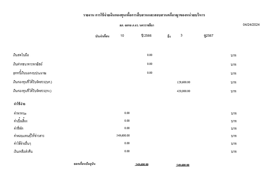 O13 ข้อมูลเงินกองทุนเพื่อการสืบสวนและสอบสวนคดีอาญา