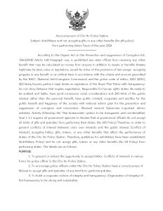 เรื่อง นโยบายต่อต้านการรับสินบนและการไม่รับของขวัญของกำนัลหรือประโยชน์อื่นใดจากการปฏิบัติหน้าที่